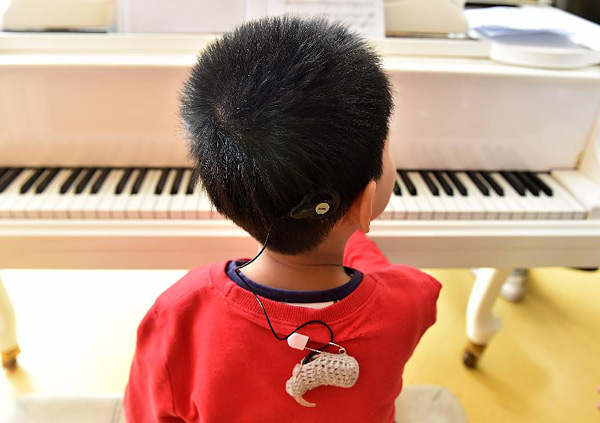 4月14日,一名合唱团小成员坐在钢琴周围演奏。天津小海豚听障儿童合唱团,是一支由先天性听力妨碍儿童组成的特别艺术团体。合唱团开始于2014年由听障儿童家长建议,旨在经过音乐协助这些佩带人工耳蜗的孩子进步对声响的敏感度,训练言语才能,到达康复训练的意图。到现在,合唱团已吸纳了20多名小团员。而跟着志愿者和艺术家的参与,合唱团的专业水平也不断的进步。三年多来,孩子们屡次参与各类表演,还参与了2016年在俄罗斯举办的第九届国际合唱竞赛,走上了国际舞台。